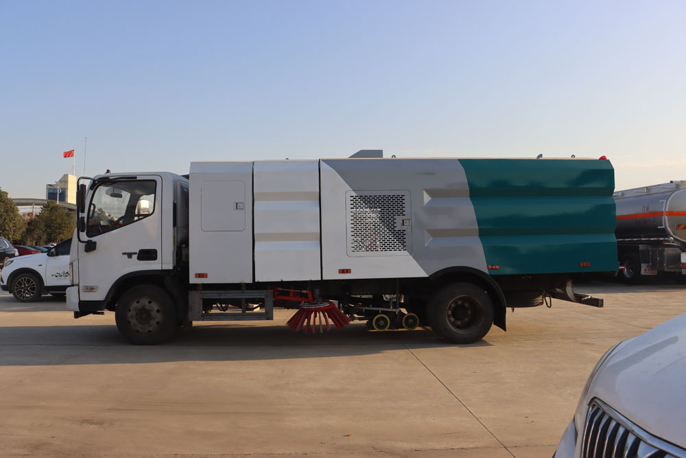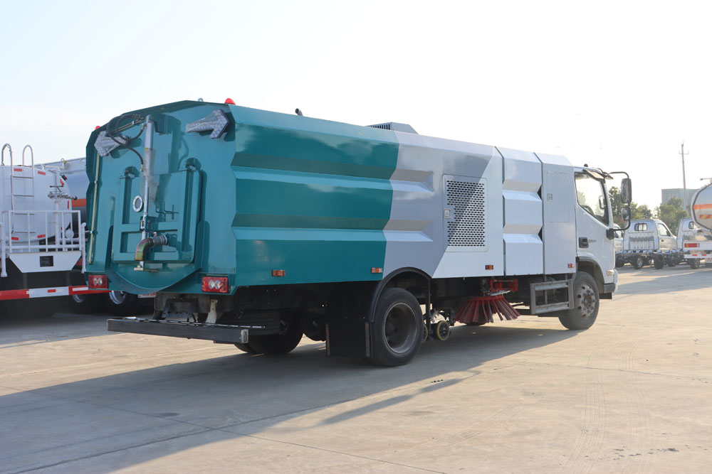 ● 清水箱和垃圾箱分體布置,有效空間利用最大化,一次連續(xù)作業(yè)時(shí)間長。同時(shí)在作業(yè)過程中可通過污水排放裝置對污水進(jìn)行排放,隨時(shí)加清水繼續(xù)作業(yè);垃圾箱采用雙油缸自卸卸料,箱內(nèi)同時(shí)設(shè)有大流量高壓噴嘴,可快速沖洗垃圾箱
