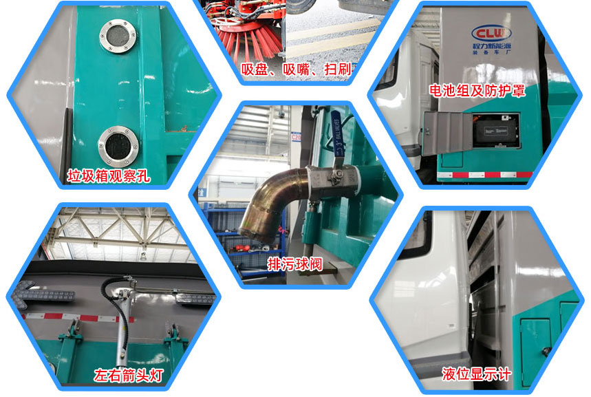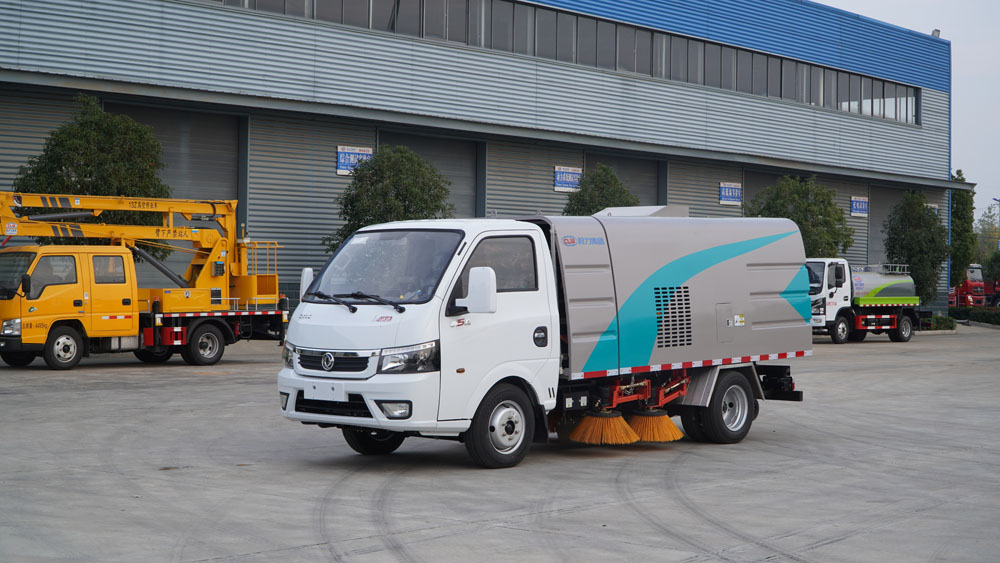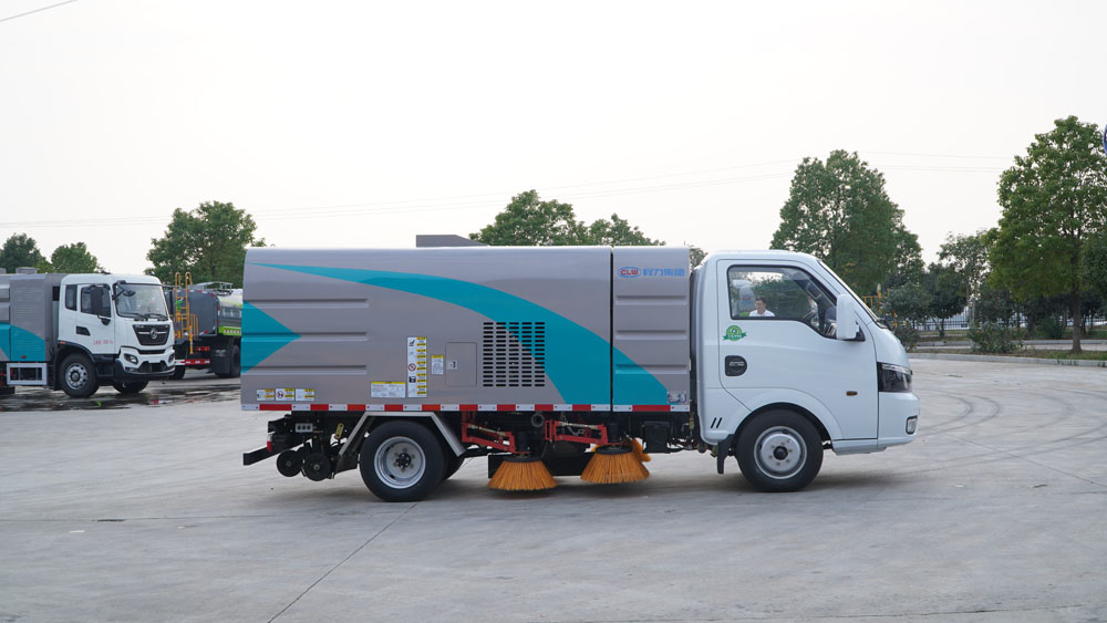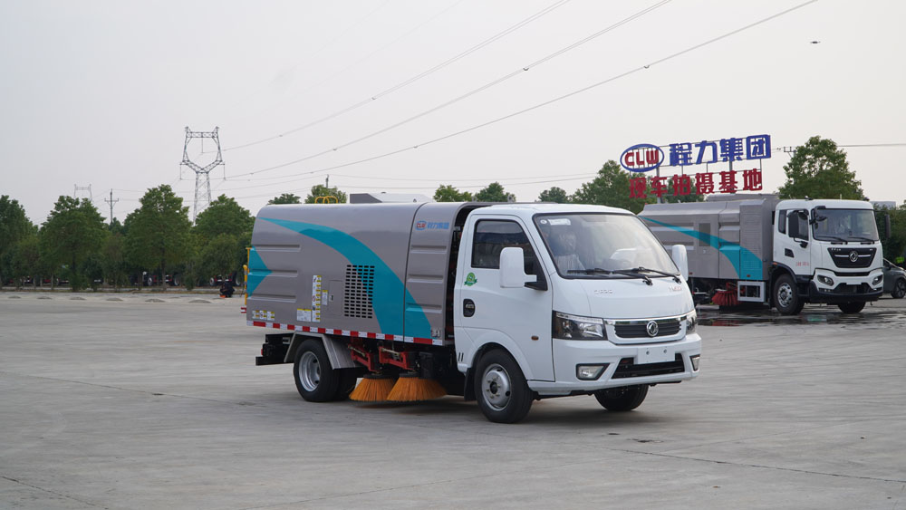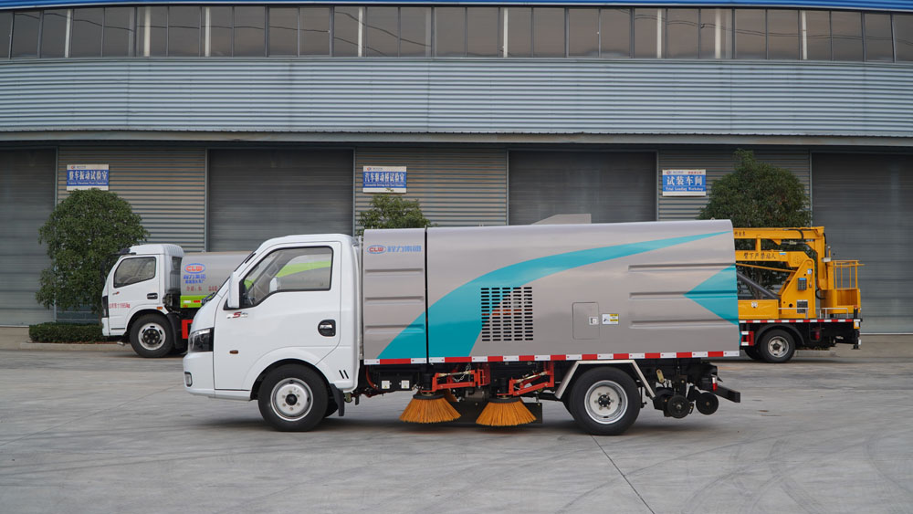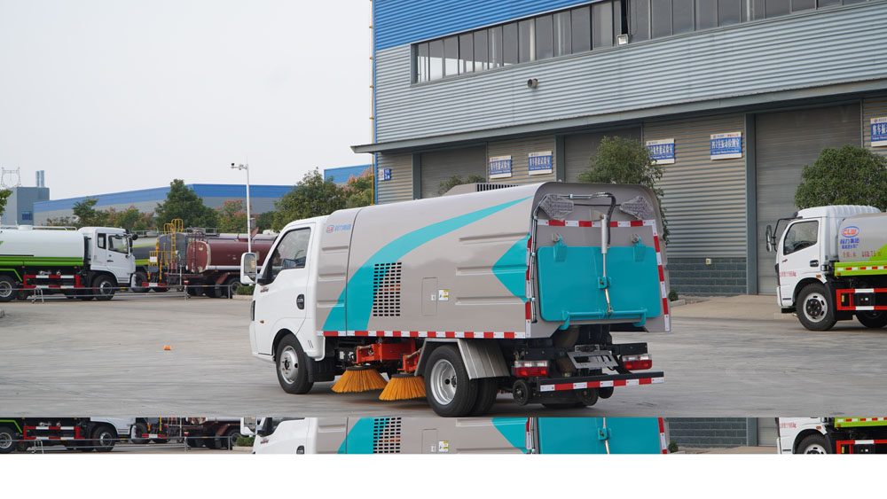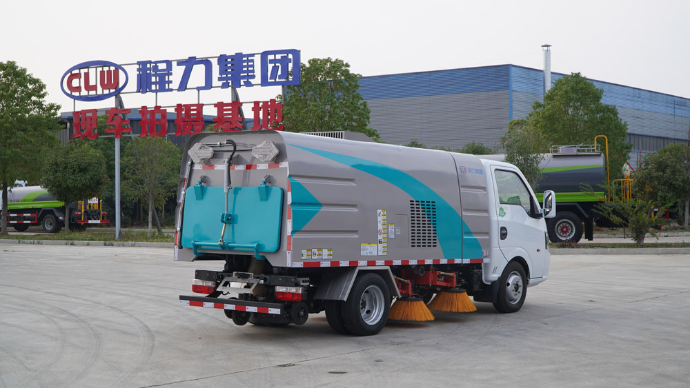 3、掃路車采用東風純電動二類汽車底盤改裝,加裝風機、清水箱、垃圾箱、左右立掃、帶噴水桿的寬吸嘴、掃盤降塵系統、液壓系統、專用裝置電控系統和副車架等改裝而成。