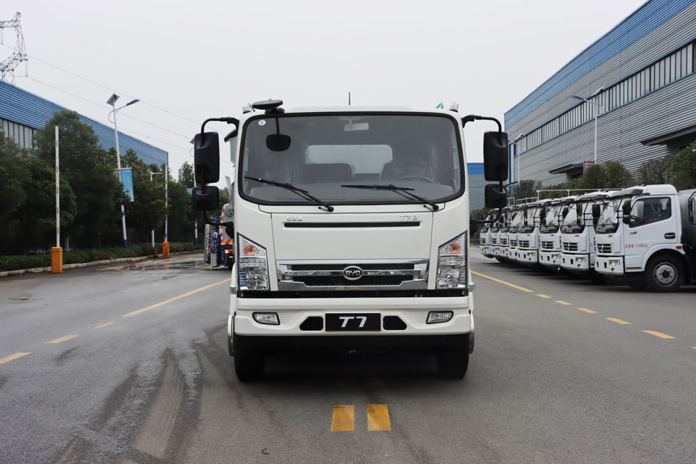 四、其他說明: 比亞迪T7B純電動多功能抑塵車是在純電動二類底盤的基礎(chǔ)上,加裝低壓沖洗、灑水系統(tǒng)、霧炮機組,由機械、液壓(氣路)、電器三部分合為一體的專用灑水作業(yè)車。 采用自吸式雙級離心泵,效率高、灑水寬度大、水槍射程遠,低壓水泵由底盤變速器取力器通過傳動軸直接傳動。霧炮機組由底盤電池帶動霧炮風(fēng)扇電機、不銹鋼多級離心泵,進行噴霧降塵工作。