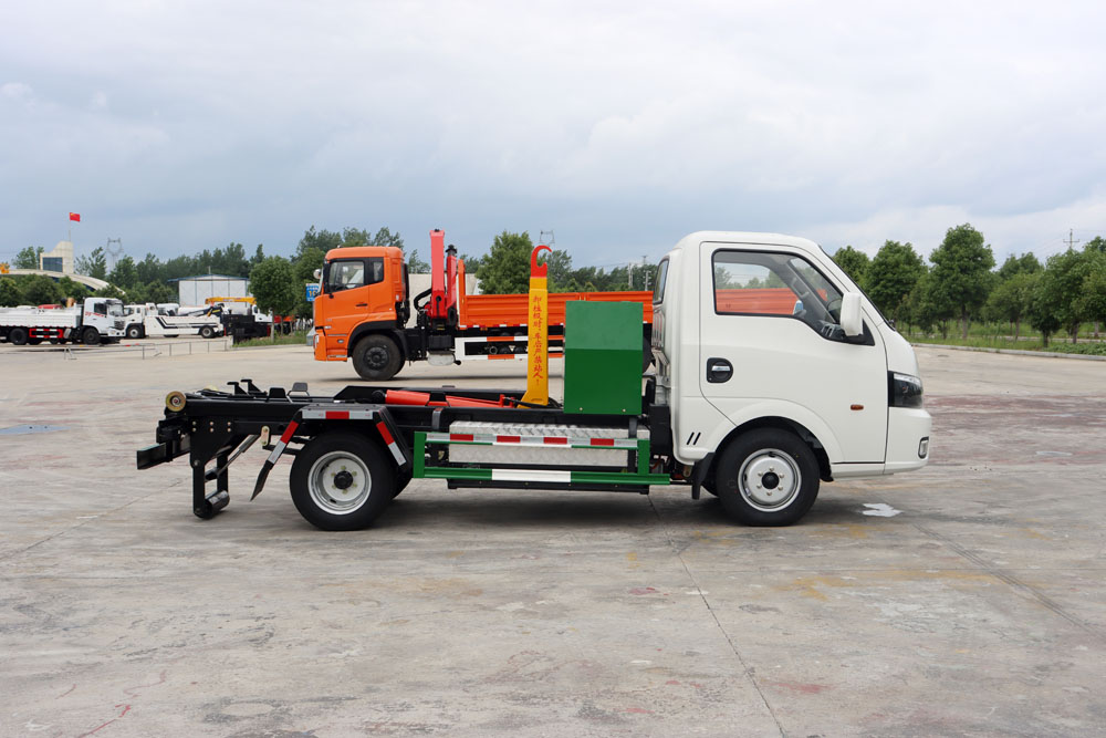 四、其他說明: 東風華神純電動車廂可卸式垃圾車,是在純電動二類底盤的基礎上,加裝垃圾箱勾臂、液壓系統,由機械、液壓(氣路)、電器三部分合為一體的專用垃圾轉運車。