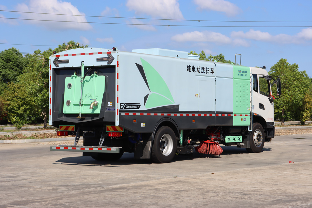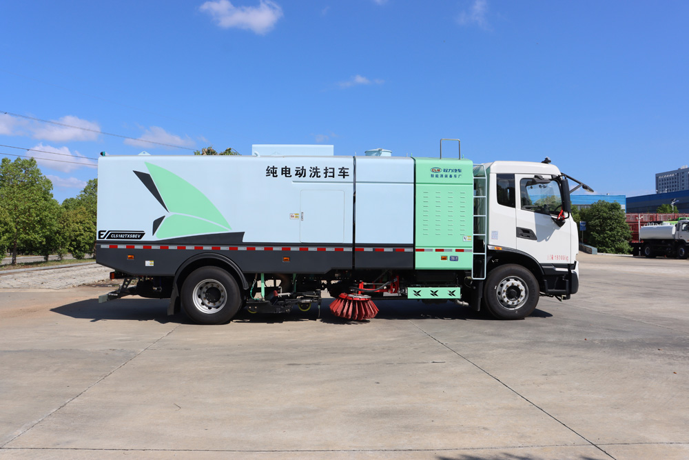 四、其他說明: 產品性能特點,方形箱體,大大增加箱體容積,增加整車美觀程度。 底盤電機直接取力,專車專配,完美匹配,無取力器,比柴油車更節省步驟、故障率更低。 洗掃車采用東風純電動二類汽車底盤改裝,加裝風機、高壓水泵、清水箱、垃圾箱、左右立掃、帶噴水桿的寬吸嘴、掃盤降塵系統、液壓系統、專用裝置電控系統和副車架等改裝而成。