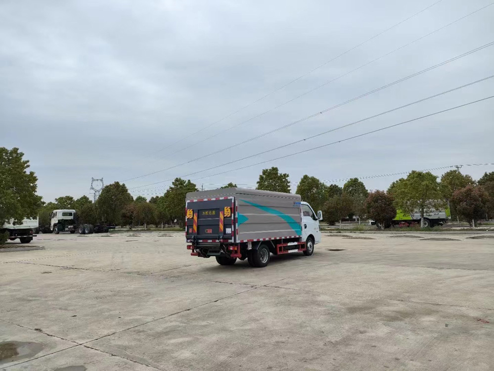 四、其他說明: 箱體采用開放式結構,可裝載12個240L 標準垃圾桶,符合城市垃圾桶換桶的收集模式。 ? ? ?能夠確保垃圾不落地、同時防止拋灑滴漏等現象,有效解決垃圾運輸過程中的二次污染問題。箱體尾部安裝液壓尾板,配力威遠鑫500KG液壓尾板,具有升降功能,滿足桶裝作業要求;