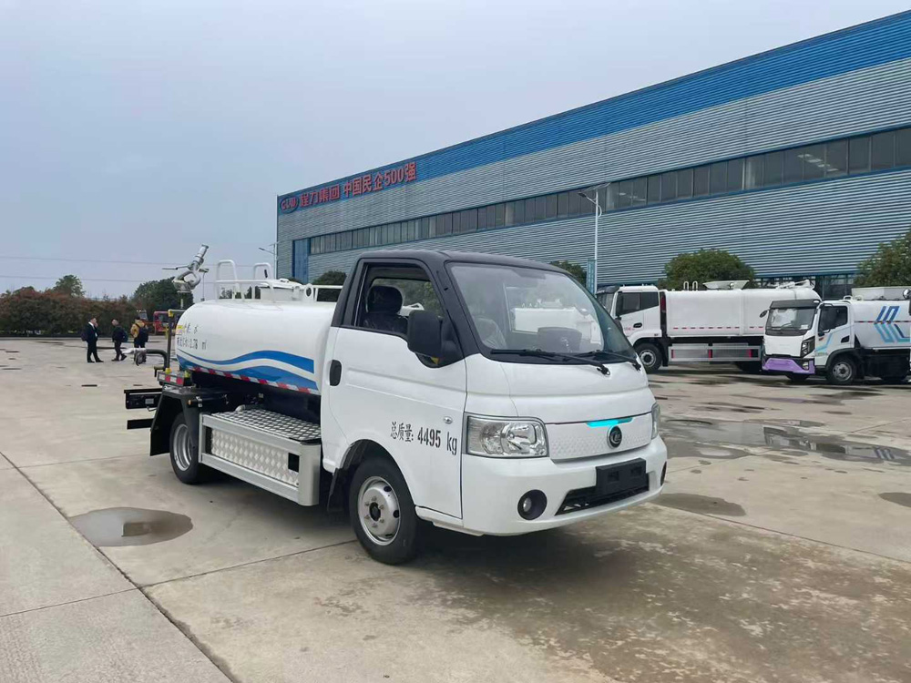 四、其他說明: 程力壹為2.5方純電動灑水車,電池:國軒高科57.6度電,充電時間:1h,建議充電樁功率:60KW,公告容積:1.87方,實際容積:2.5方 ,續航里程:265km(等速法),作業續航:滿電狀態下可使用10箱水(含行駛用電、往返加水、預留20%安全電量),功能配置:對沖、后灑、側噴、綠化水炮。