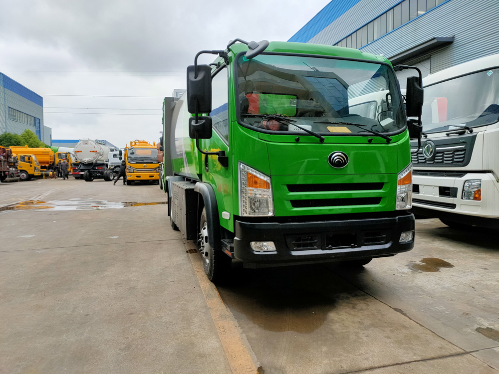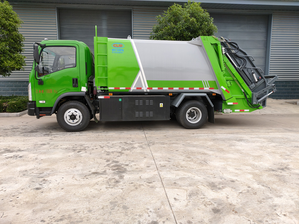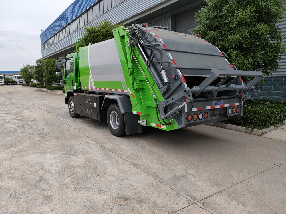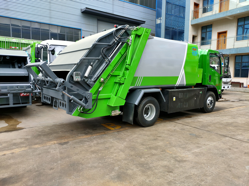 6. 方便的操作控制,作業(yè)控制盒分別安裝在駕駛室內(nèi)和車尾右側(cè),左側(cè)帶緊急停止按鈕,配備遙控器,駕駛室內(nèi)的作業(yè)控制盒可控制推擠卸料和選擇操作模式(如自動或手動),車尾的作業(yè)控制盒則控制壓填機(jī)構(gòu)和翻桶機(jī)構(gòu)的作業(yè),使用操作十分方便。特別是在垃圾填埋場,作業(yè)人員無須下車即可完成卸料和污水排放。