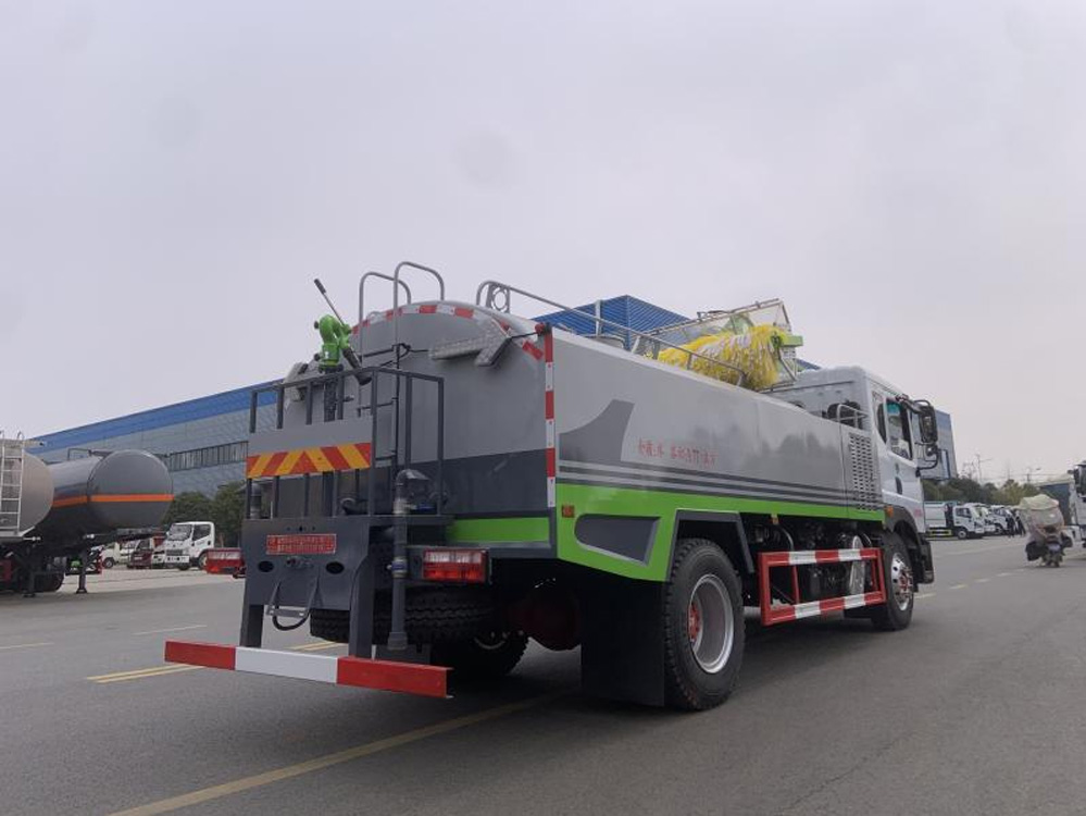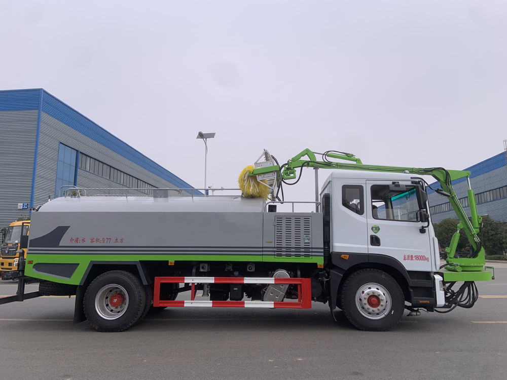 隧道清洗車由底盤,罐體、機械臂、水泵、噴嘴,清洗刷、一體完成工作。機械臂可359°旋轉,所有的操作都在駕駛室完成。