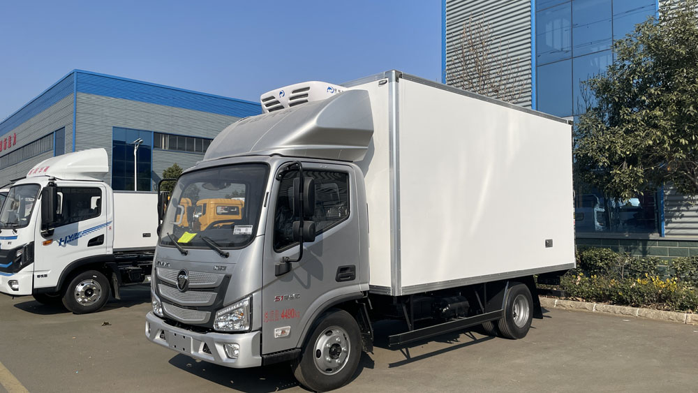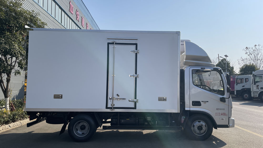 福田歐馬可4米冷藏車可在廂體頂部選裝軌道肉鉤、及在廂體底部選裝T型通風槽