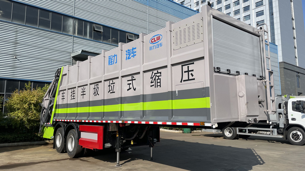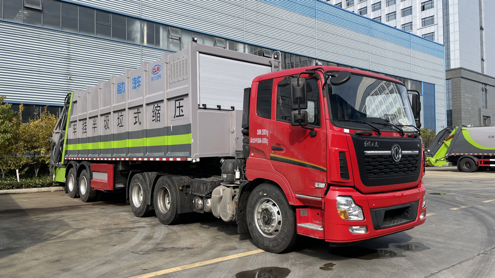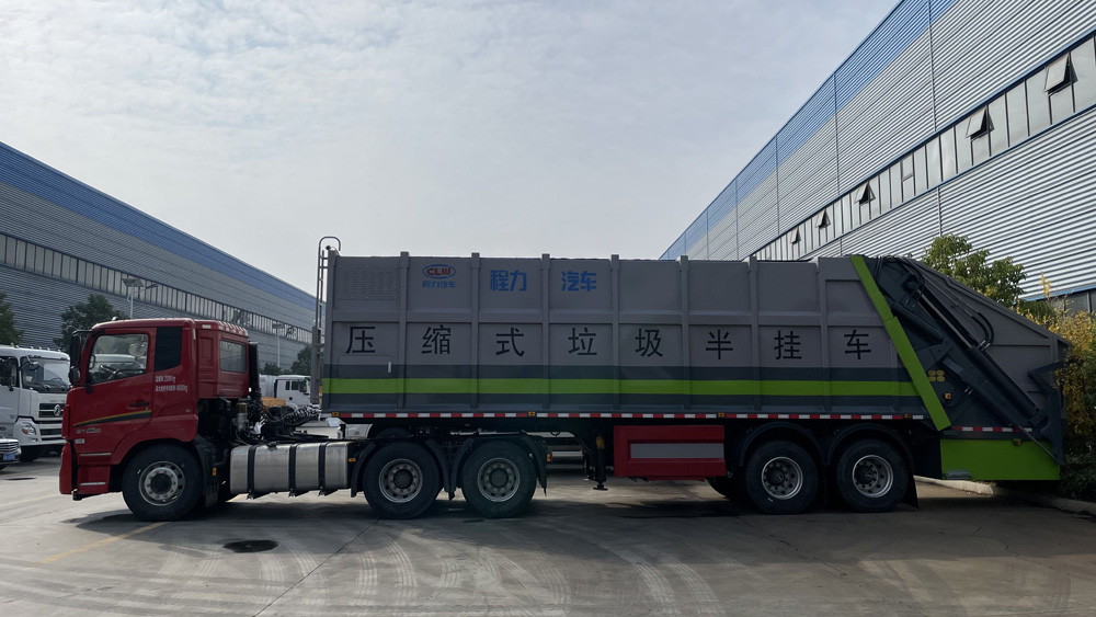 四、其他說明: 半掛式設(shè)計(jì)使其車身較長,車廂容積一般可達(dá) 30-40 立方米甚至更大,能裝載大量垃圾,可有效減少運(yùn)輸次數(shù),提高垃圾清運(yùn)效率,適合城市大型垃圾轉(zhuǎn)運(yùn)站、大型社區(qū)或商業(yè)區(qū)等垃圾集中區(qū)域的垃圾清運(yùn)。對于生活垃圾、建筑垃圾、工業(yè)垃圾等多種類型垃圾,只要在車輛設(shè)計(jì)承載范圍內(nèi),均可進(jìn)行裝載運(yùn)輸。較大的空間也便于收納體積較大的垃圾。
