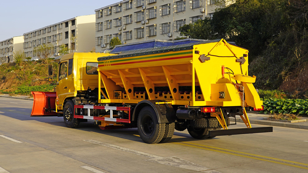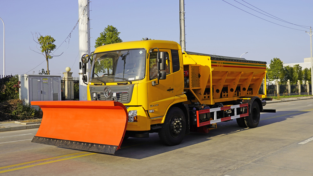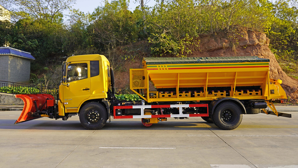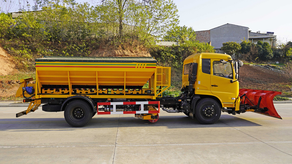 四、其他說明: 東風(fēng)天錦多功能除雪車,集掃雪、推雪、吹雪、撒布等多種功能于一體,可通過更換不同的作業(yè)裝置,如除雪鏟、掃雪滾刷等,滿足不同場(chǎng)景下的除雪需求,有效提升掃雪鏟冰的工作效率和作業(yè)質(zhì)量.