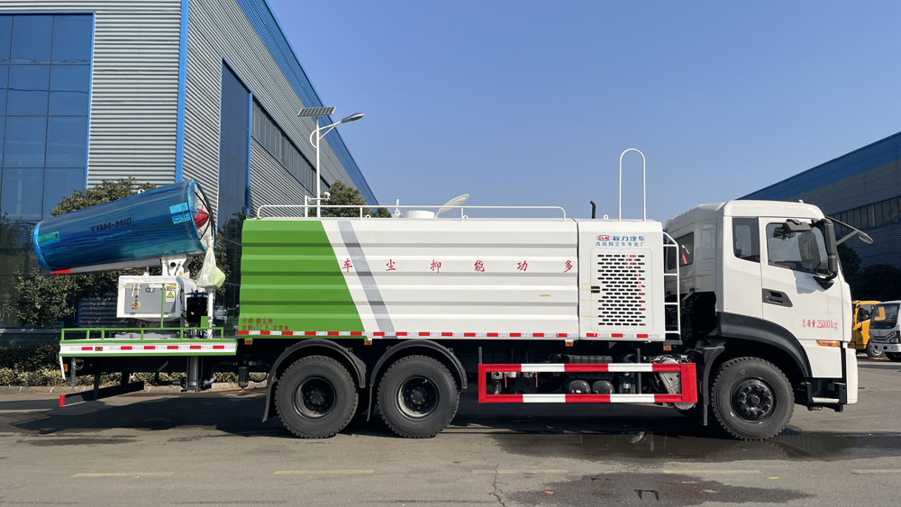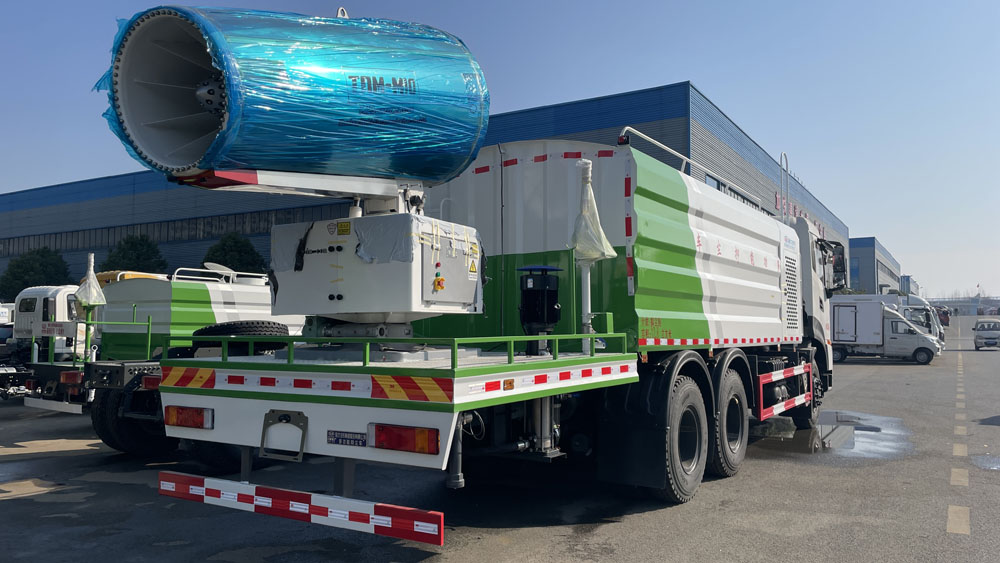 二、多功能抑塵車特點:搭載我司自主研發(fā)的專用風(fēng)送式霧炮機(噴霧機),不同霧炮,搭配功率不同的副發(fā)動機,射程可達30-120米。噴霧機可實現(xiàn)無線遠程遙控作業(yè),操控簡單靈活,安全可靠。多功能抑塵車兼具綠化噴灑,消防應(yīng)急,除塵降塵,噴藥消毒等功能,具有功率大、用水量少、射程遠、覆蓋面積廣、抑塵效果好、作業(yè)效率高、噴霧速度快等特點。
