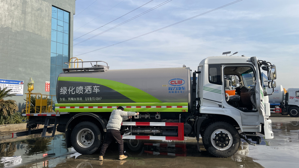 三、選裝配置: 選配駕駛室內電控氣動操作;大鴨嘴前沖噴頭壹對;萬向前沖球閥;路面沖洗水管卷盤;本田高壓水泵,水槍可沖洗人行道、移動洗車等; 藥盤;長警燈,LED箭頭燈;罐側帶閘門,罐后加裝噴霧降塵裝置;灑水車泵標配程力泵選配杭州威龍泵;可對主管道加粗,可選316大口徑球閥;罐體內防腐、保溫、襯塑處理,灑水車作運水車用可加裝自流口。運熱水罐體可做保溫,運生活用水可做食品級304不銹鋼罐體。