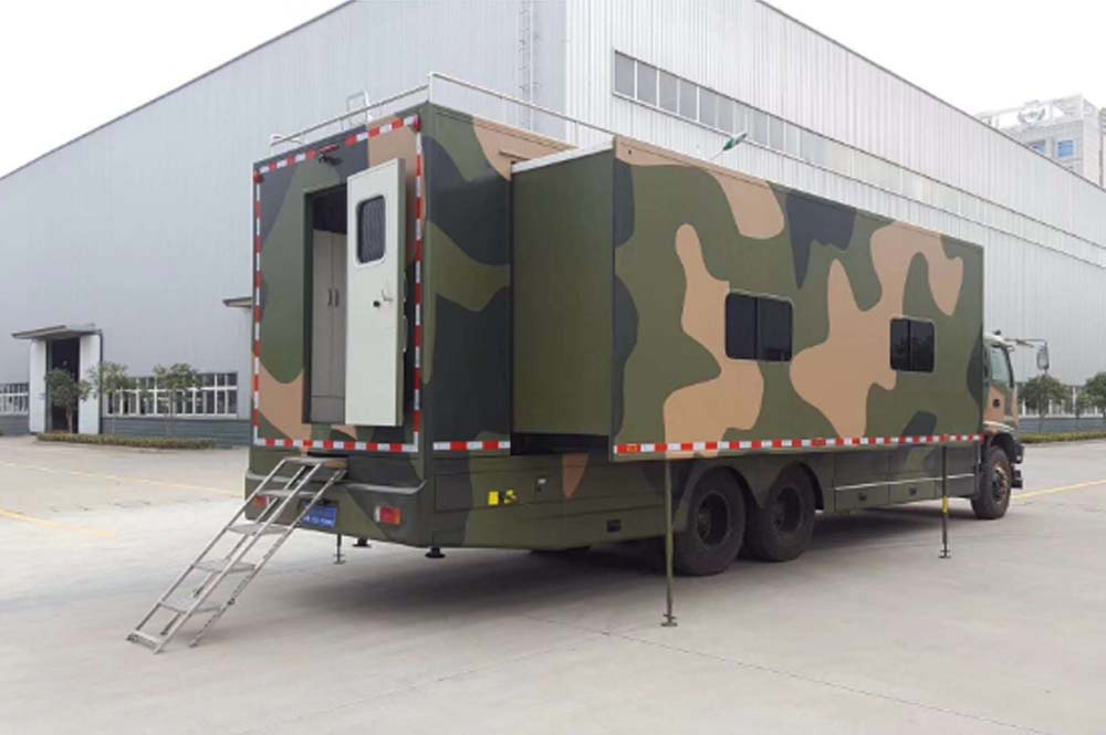 艙體結(jié)構(gòu)具有環(huán)境適應(yīng)性好及具有多種防護(hù)性能,具有隔熱保溫、隔音、防水,防火、防熱輻射、防海洋鹽雯腐蝕、防蟲蛀等性 能。 電氣系統(tǒng):電氣系統(tǒng)主要有供電系統(tǒng)、配電系統(tǒng)、操控系統(tǒng)和照明設(shè)備組成,廂體內(nèi)所有電器線路均為暗線布置,走線安全簡潔。集中在控制面板上統(tǒng)一控制,滿足絕緣和防雷設(shè)計的需要。 裝飾和防腐;所有暴霞金屬面均進(jìn)行防腐外理,表面噴涂采用軍綠亞光油漆,或根據(jù)客戶要求制作,外部涂具質(zhì)量應(yīng)符合OC/T484汽車油漆涂層的相關(guān)要求及GJB1379軍用汽車的顏色與涂層的相關(guān)要求。 車廂內(nèi)部空間分為住宿間和衛(wèi)生間 2個部分。 整車外形尺寸(mm)長11750*寬2550*高3600 方艙外部尺寸 長9400*寬2460*高2100 方艙內(nèi)部尺寸 長9300 寬2300 高 2000