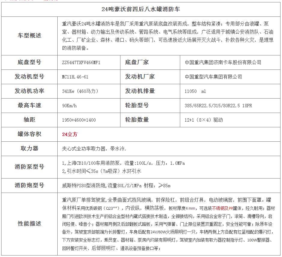 一、底盤配置: 采用重汽豪沃HOWOZZ5447TXFV466MF5車身,配置玉柴MC11.46-61發(fā)動機460馬力,國六排放標準,軸距1950+4600+1400(mm),整備質量17.2噸,額定載質量24.8噸,陜齒十二擋變速箱,帶動力轉向,帶原廠空調,該車上黃牌,城區(qū)道路請注意限行標識。